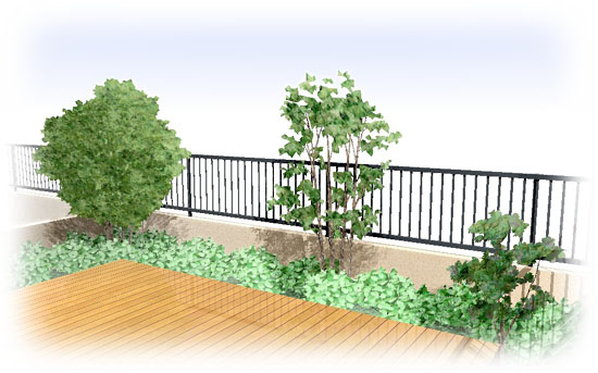 このような円形の低木が並んでいる表現を、円形が出ないような表現に直したいというお問い合わせをよくいただきます。