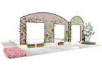 目を引くのはやはり虹の形状のオリジナルアーチ。夏の時期には繁殖力旺盛な蔓植物を育てて緑の門を作ります。