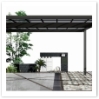 アプローチとカーポートは兼用で、小さなスペースにふんだんに緑を配置しました。飛び石に少しだけ遊び心を加えています。