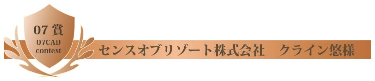 この度は07賞に選出して頂き誠にありがとうございます。今回は大きい建物だった為、画面が固まりながらも無事に描き上げました。自分が苦戦していたところを07の方に評価して頂けた事を嬉しく思います。これからも分かりやすく素敵な図面、パースを描いていきたいと思います。本当にありがとうございました。