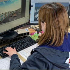 公共施設の作図は初めてで、スケールが大きすぎるためPCに負荷がかかり、作図にとても時間がかかった。このままパース・レンダリング作業をいつも通り進めるのは効率が悪いと思い、まずカメラの位置を決め、カメラに映らない部分を消すことによりスムーズに作業でき、時間短縮に成功した。ホームページに使用する画像なので、光の強さ・影の方向を試行錯誤しながら調整しリアリティを意識して作成した。 また今回の依頼で、お客様や施工する職人さん達と庭の完成イメージを共有する為の外構図面以外に、ホームページなどで使用する『画像』という新しいジャンルの商品価値を見い出せた。