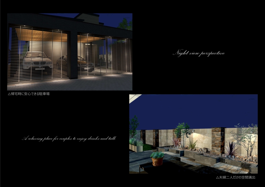 夜景パースも普段の仕事でも取り入れることもありますがここまで多く照明を入れる機会もありませんので夕景の1枚パースのように華やかな演出に出来たときは感動しました。