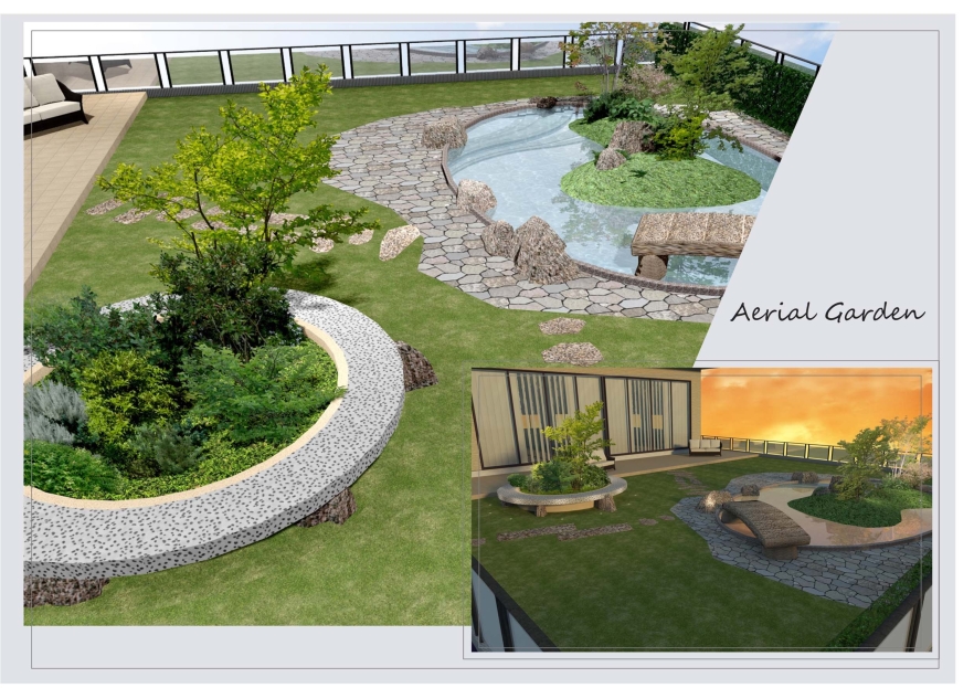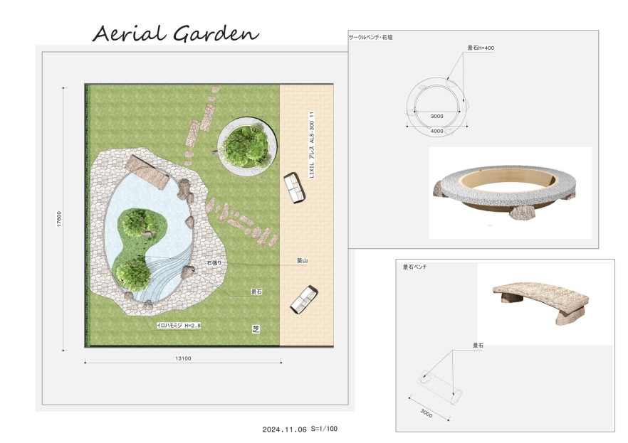 高齢者施設の屋上の庭園とのことで和風のイメージを意識してデザインしました。