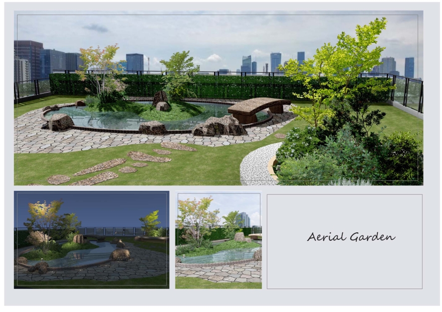 都会の屋上でも季節や日々の時間の中で利用者様に楽しんでいただけるお庭になればと思いデザインしました。