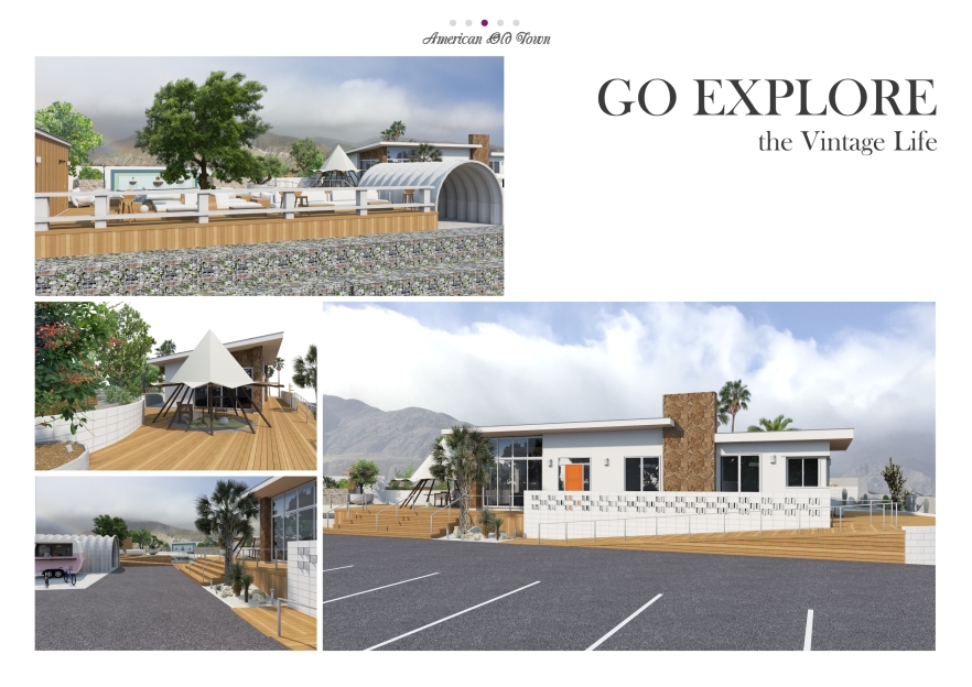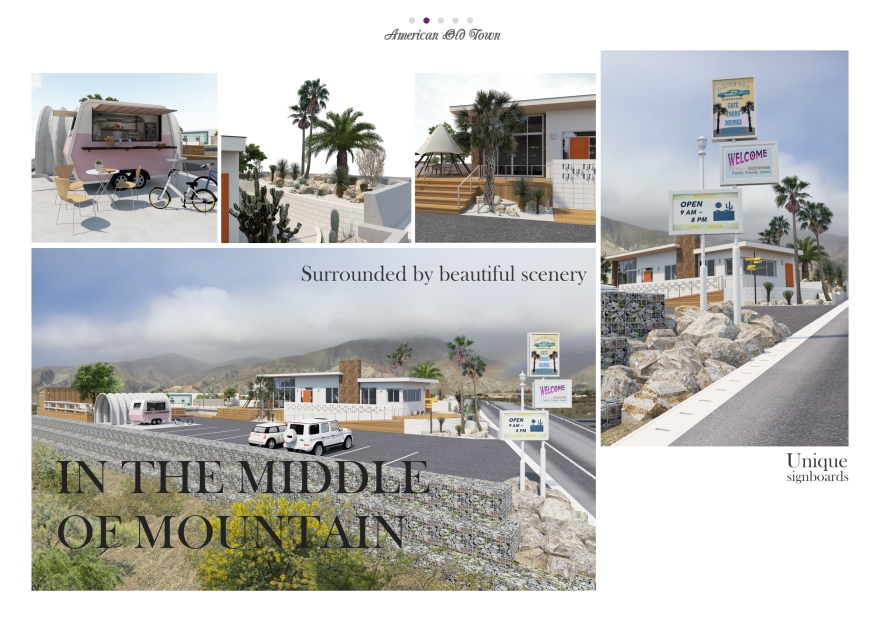 茨城県常陸大宮市、キャンプ場で有名な御前山という場所に、アメリカンオールドタウンをコンセプトとしたドライブインのプランです。