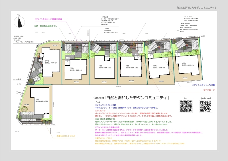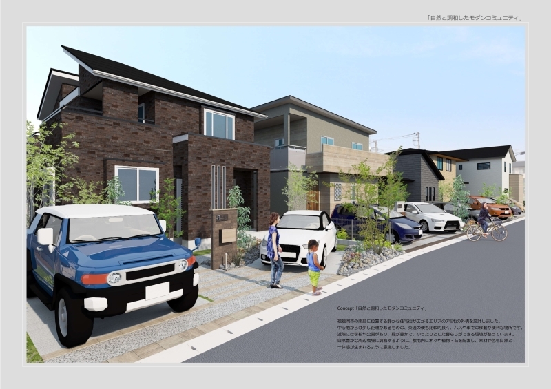 戸建分譲住宅7棟からなるコミュニティをデザインした作品です。