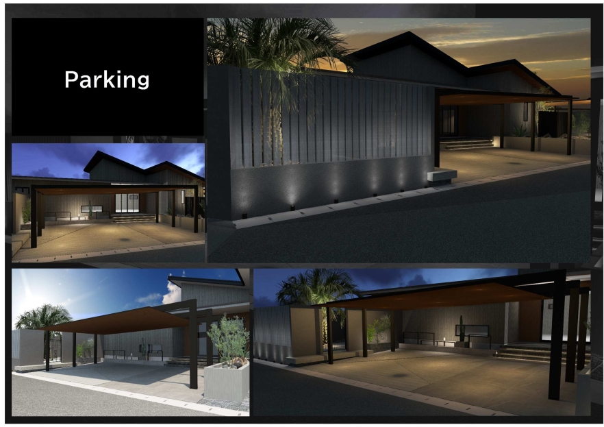 パーキングと庭を完全に分けてメリハリのあるスタイルデザイン。