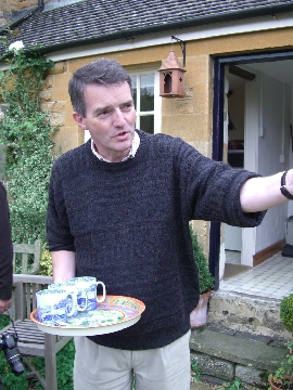 ツアーのメンバーを歓迎してくれたご亭主です。もちろん紅茶での歓迎でした。クッキーも何か心のこもったもてなしだったのでしょう。ディビット・ヒックス氏、学校の先生です。趣味が高じて家を手に入れて時間のある限り庭つくりに邁進。バスの運転手によればこの家8000万円。庭がいいので1億円 だろう!!!ちなみにロンドンの平均住宅価格は6000万円だそうです。庭付きの田舎屋に住むことはイギリス人の夢のようです。