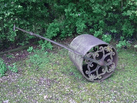 隠れた庭の一つはキッチンガーデンを考えいるとのことまだ手が回らないと 未完成の庭にやることがありすぎる忙しい毎日を送っているようです。ローラー(写真左)はビクトリア時代に使われた骨董品だそうです。