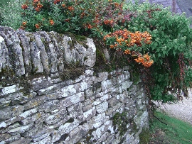 イギリスコックウォルスに広がる牧場を囲い込んでいるのがライムストーンの横積みの塀です。特徴は天端は木端立てにしているところです。〔拡大図〕