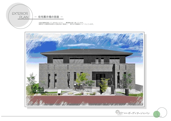 住宅展示場の造園デザインの鉄則は【売り物の建物】をよく見せることと、来場客を招き入れるアプローチのありかたです。展示場というイメージリーダー的な顔と、他方で住まい手の求める【庭のある一戸建て】の親近感がなくてはなりません。