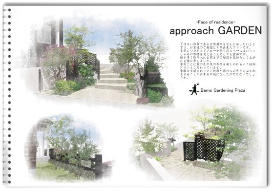 「住まいの顔である玄関まわりを何とかしたい」と言う、お客様のご要望により出来たプランです。玄関につながるアプローチ周りのスペースはいらっしゃるお客様を迎えるうえでとても重要です。緑を多く取り入れ玄関までの階段を気持ちよく上がれるように考えました。