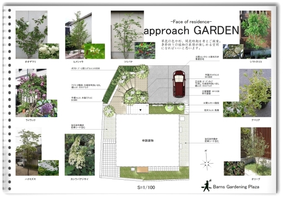 限りある敷地の道路沿いに、都市・郊外型のスローライフを「庭」で熱っぽく語っていただいた作品だと思います。淡いグレイッシュトーンの世界観(せかいかん)で手書き風にまとめられた秀作です。