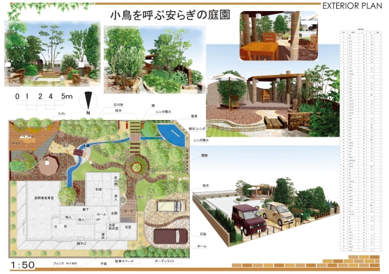 | 優勝 | 愛知県立猿投農林高等学校 環境デザイン科 森田賢様 | 小鳥を呼ぶ安らぎの庭園 |