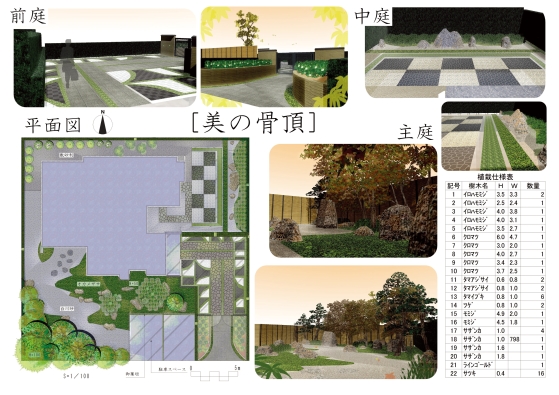 | 入選 | 愛知県立猿投農林高等学校 環境デザイン科 佐々木優様 | 〜自然を味わえる庭〜 | 愛知県立猿投農林高等学校 環境デザイン科 丹羽美咲様 | 水の動きを楽しむ庭 | 愛知県立猿投農林高等学校 環境デザイン科 張本英男様 | 美の骨頂 | 奈良県立磯城野高等学校 環境デザイン科 岸本賢一様 | 和風の庭に小さな森 | 兵庫県立農業高等学校 造園科 篠原きりこ様 | 家族の笑顔が溢れる空間 |