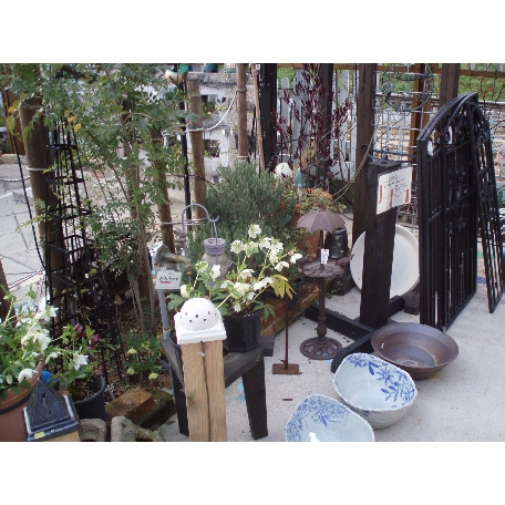 展示場には、輸入物のエクステリア雑貨や、オリジナルのエクステリア商品が並んでいます。