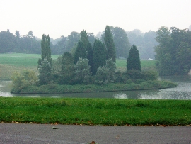 ブレニムのホームページはこちら中ノ島の樹木の配置が 巧みで風景なのでしょう。まったくの人工の庭を自然と呼ぶことができるとすればそれは時間ですね。作られてから今日まで240年の時間は人工であれ鳥が運んだ種であれもう自然である。240年の答えが目の前に広がっていました。