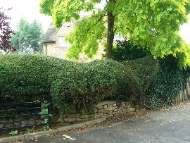 無造作のようで確かなデザインを感じさせるのがイギリスです。壁にはしごのような意匠。なんなんでしょうか。でも絵になってますよね。大刈り込みの生垣も100年ぐらいは経っているのでしょうね。味ありますよね。
