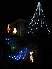 個人宅の楽しいイルミネーションは、最近は定番化してきました。やっぱり、おうちで楽しめるのが一番の利点です。スローでロハスです(受け売りです)。沢山種類があって面白いですね。近所を少し回っただけなのですが、一時期の加熱を過ぎたとはいえ、たくさんのお宅が楽しまれていて、どのおうちも暖かそうでマッチ売りの少女気分でした。写真がつたなくて申し訳ありません。