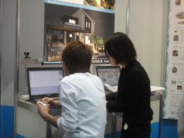 入り口を入ってすぐの大スクリーンには、最新CADシステムによるムービーを2種類展示していました。「これからの町や庭の提案。時間の経過による空間の多彩な変化」をテーマにしたもので、どちらも迫力ある映像でした。
