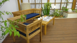 木目がとてもおしゃれなカーポート「アートポート」など目を引く商品が多数ありました。商業用のテーブルやチェアも素敵です。