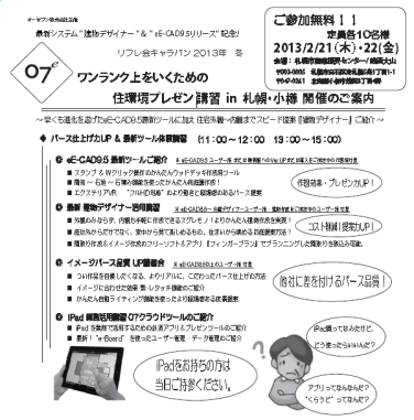 参加無料オーセブンCAD講習会「オーセブン・リフレ会キャラバン2013」講習内容