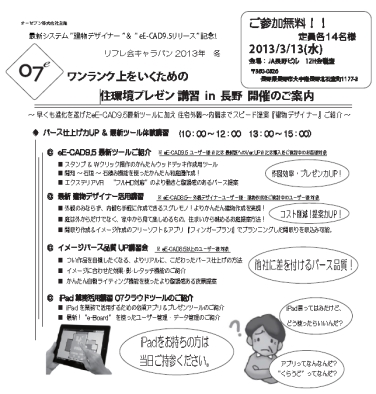 参加無料オーセブンCAD講習会「オーセブン・リフレ会キャラバン2013」講習内容
