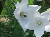 キキョウ白い花です。同じ種類で、紫もあります。白い花にミツバチがいました。