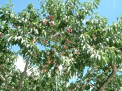 こちらの桃はもう食べごろでしょうか?空の水色できれいですよね。