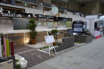 ![]() | ![]() 熊本に拠点を置くブロックメーカー 蛇の目ブロックブース。自社製造のオリジナル化粧ブロックや、輸入舗装材などを展示。 |
