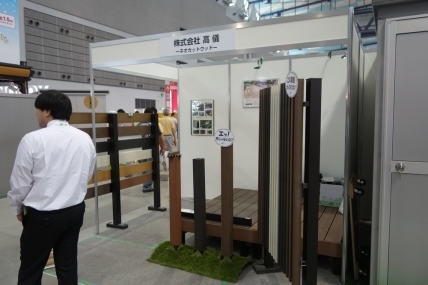 ![]() | ![]() ネオカットウッドのブランドで知られる、新潟の建材メーカー 高儀ブース。九州の展示会でもお見かけしましたが、エリアがこちら寄りですので、今回詳しくご紹介。ネオカットウッドは木粉入り樹脂材でいわゆる人工木。デッキ材やスクリーン材のラインナップ。 |