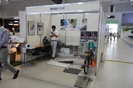 ![]() 神奈川のバリアフリー商材メーカー ミスギのブースでは、乗り入れスロープやカーストッパーを展示。 | ![]() |