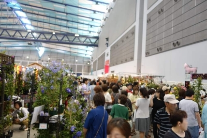 ![]() | ![]() こちらは会場内で一番混雑していたところ。苗木の販売コーナーです。早朝から集まっていたお客様の目的はこちらだったのでしょうか。季節柄、バラのコーナーが大人気でした。 |