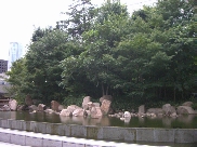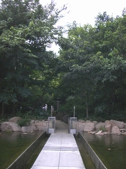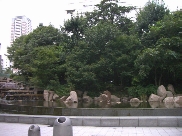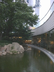 「都市の中に自然を持ち込む」というテーマのもと緑が中心となった都市づくりを目指して作られたそうです。 森の中はとても涼しく、鳥のさえずりも聞こえていました。今は時期を過ぎて見れませでしたが蛍を放流しているようで6月上旬から下旬には鑑賞の機会もあります。 夜は滝にいろいろな色のライトを当てた幻想的な滝も見れました。