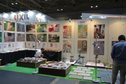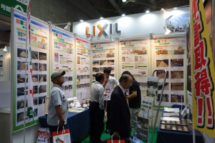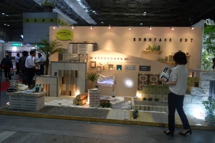 ![]() | ![]() 最初に目に入るブースは、神戸に本拠地を置く、久保田セメント工業。これはまたオシャレな展示の様子。 |