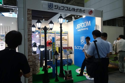 ![]() | ![]() 電設メーカーのジェフコムブースでは、主にイタリアンセレクト照明を展示。優雅なクラシックデザインのアプローチライトは、実は樹脂製。中心に鋼管が入っていて強度上の問題は無いそうです。軽くて施工性も良さそうですね。 |