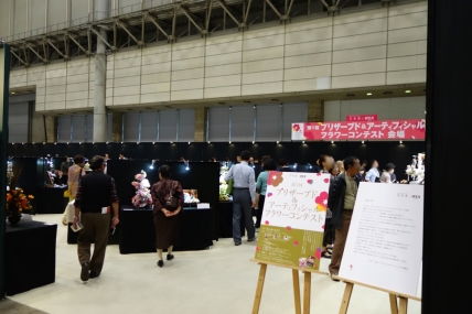 ![]() | ![]() 今回が第1回となる、プリザーブド&アーティフィシャルフラワーコンテスト。大きくスペースをとり、参加作品が並べられていました。 |