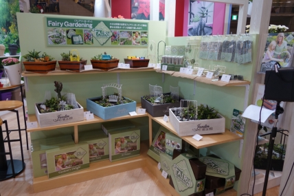 ![]() フラワーEXPOではホビー性の高いアイテムも多数展示されていました。ここもおしゃれな雑貨屋風。欧米ではすでにガーデニングの1ジャンルとなっている、ミニチュアガーデン(フェアリーガーデン)のアイテムを扱う、高松商事ブース。 | ![]() |