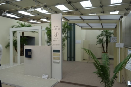 受付を済ませ、入ってすぐお出迎えしてくれるのは、和モダンな小庭。樹脂製竹垣に、エバーアートウッド、ウォーターガーデン、タイル、ファニチャー。タカショーのカタログを彩る様々なアイテムがうまくまとめられています。 | ![]() |
