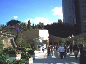 なんばパークスとは、大阪市のど真ん中に、2003年に開業した、「緑との共存」を大きなテーマとする大型商業施設です。商業施設の他に、屋上庭園として、緑の広がるパークスガーデンが充実しています。 早速、最上階のステップガーデンを散策してみました。最上階は、人も少なく、静かで、市内を見渡す眺めもいい為、カップルのデートスポットになっているようです。