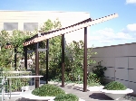 デッキテラスと、珍しい斜め屋根のパーゴラ