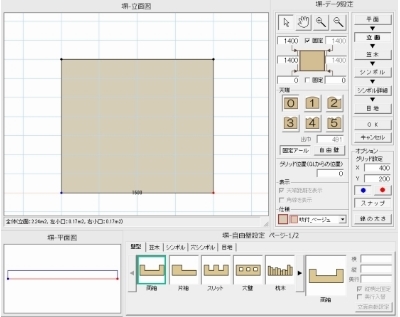 固定アール/自由壁/グリッドの変更/天端形状の調整