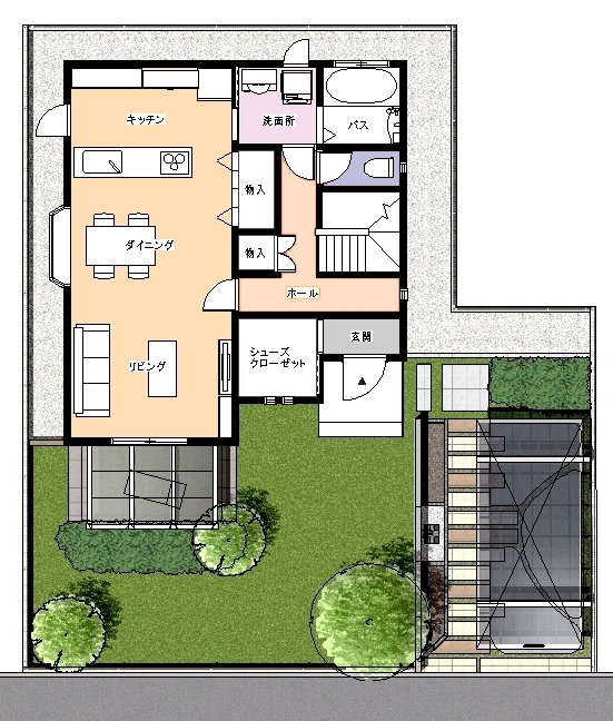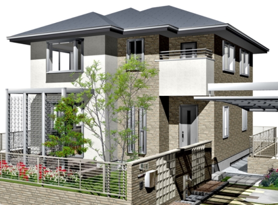 住宅・エクステリアパース エクステリア・造園CADのオーセブンCADの上で、建物とエクステリアを統合します。 ひとつのソフトの中に入っていますから、手早く簡単です。 オーセブンCAD上ですべて完結します。 ※建物デザイナーをご利用いただくためには、最新のオーセブンCADバージョンが必要です。 ご不明な点はお問い合わせください。 ▼オーセブンCADでエクステリア+建物の作図例。 ※e-tokoプランの車庫周り、庭周りデザインを利用(e-tokoプラン:オーセブンCAD標準搭載のWebプラン集)。 |