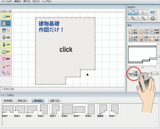 【建物デザイナー】は、その過程の建物作図を受け持つオーセブンCADオプションソフトとして、「常識を超える簡単作図」を実現しています。