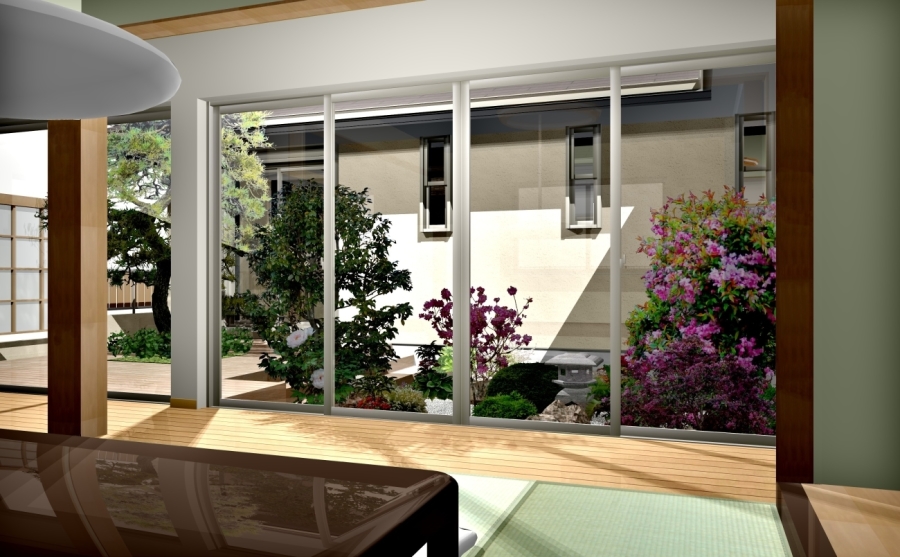 そこに必要なお部屋(内観)だけの入力で、室内から愛でるエクステリア・シーンが完成する・・・設計者の作業効率を追及しています。