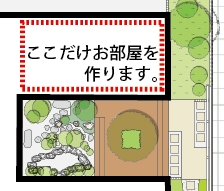 【オーセブンCAD】⇔【建物デザイナー】 【建物デザイナー】を使うと、お住まいの外まわり計画を、【室内から眺めた】視点で作れます。それもスピーディな部分作図で、【庭】【テラス】【ウッドデッキ】【目隠しフェンス】等の新イメージが完成します。 ここでは、「和室から眺めた中庭」のご提案パースをスピード作図でご紹介します。 ![]() |