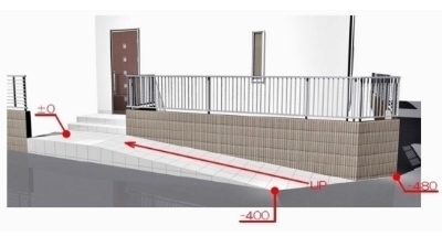 ・レンガラインやピンコロラインのデザインが勾配のつく範囲に含まれる場合