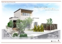 全体をクローズドな作りとすることで、駐車場奥の余剰空間が、素敵なプライベート空間として生まれ変わり、南欧風のソフトな印象の塗り壁で、高い塀の圧迫感も和らいでいます。多数のパースを細かく配置して、イメージを掴みやすくする工夫を感じました。しかしながら、実際に説明を聞きながらでないと見落としてしまう「仕掛け」が沢山ありそうです。実際のプレゼンテーションもとても楽しいものとなっただろうと想像できます。