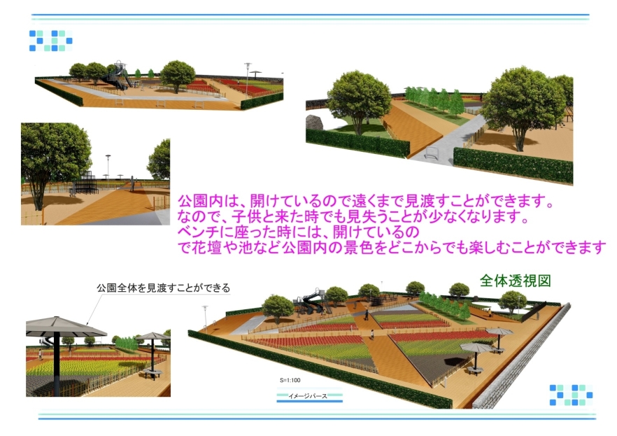 公園に遊びに来た人たちが遊ぶ時や散歩をする時に、公園内のいろいろな場所を見た際に飽きずに回ることができます。