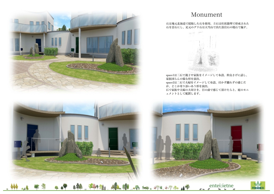 本作品は自分の地元でもある北海道を舞台に、庭が暮らしの中で自然に機能し、景観としても調和すると共に、人と人との繋がりを大切にしたデザインにしました。